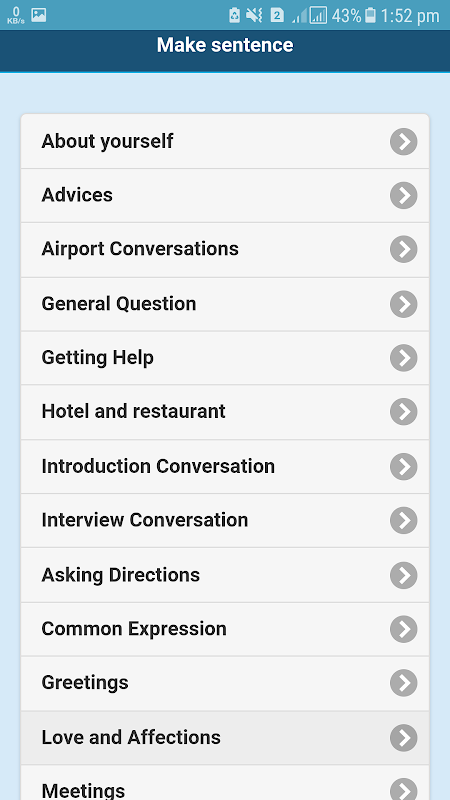 ইংরেজিতে খুব ভাল ভাবে সারাজীবনের জন্য শিখার জন্য আমরাই প্রথম সম্পূর্ণ ফ্রিতে বিভিন্ন কেটাগরিতে ভাগ করে ইংরেজি শিক্ষার সুব্যবস্থা করা হয়েছে । একজন দুর্বল মানুষ ও এই অ্যাপটি যদি অনুসরণ করে তাহলে সেও ইংরেজিতে অনলগ কথা বলতে পারবে । আমাদের এই অ্যাপটি পড়ে খুব সহজেই ইংরেজি এর অনেক কিছু সম্পর্কে অভিজ্ঞ হবেন যা আপনাকে ইংরেজিতে কথা বলার উপযোগি করে তুলবে ।