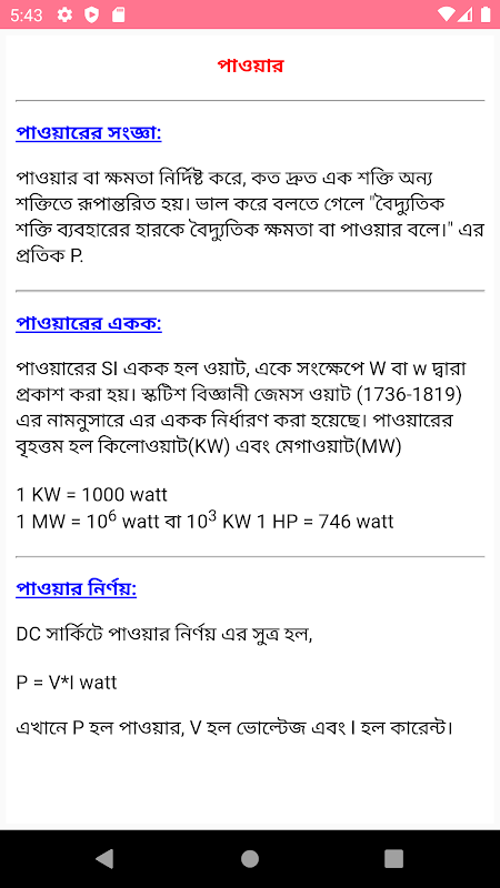 Информация ইলেক্ট্রিক্যাল ইঞ্জিনিয়ারিং APK