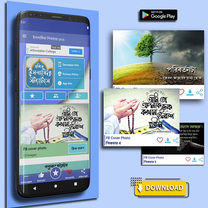 আশা করছি এই অ্যাপ থেকে ইসলামিক ফেসবুক স্ট্যাট াস ছবি সহ ডাউনলোড বা ইসলামিক পিকচার ২০২৩ গুলো ড াউনলোড করতে পেরেছেন। এই অ্যাপটি ভালো লাগলে অবশ্যই আপনার বন্ধুদের ক াছে পৌঁছে দিবেন যেন তারাও ইসলামিক উক্তি ছবি সহ স্ট্যাটাস ডাউনলোড করে উপকৃত হতে পারে। ইসলামিক ইসলামিক স্ট্যাটাস ছবি সহ নিয়ে আপনার কোন মতামত থাকলে জানাতে পারেন।