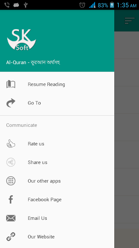 Bangla Quran is a Smartphone application designed to facilitate the native speakers of Bangladesh with the divine teachings of Quran. This Application has embedded with authentic translation, transliteration, and audio recitation of entire 114 Surahs of Quran e Kareem.