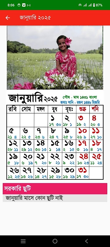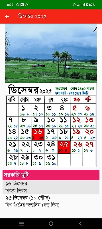 Информация ক্যালেন্ডার ২০২৫ (En-Bn-Ar) APK