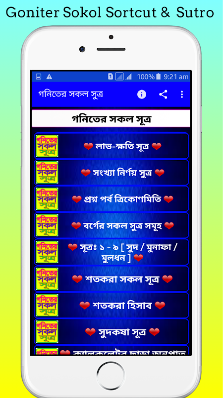 আমরা যারা গণিতে ছাত্র বা বিজ্ঞান বিভাগের ছাত্র তারা অংক করার সময অনেক ঝামেলা পড়েতে হয় যেমন সূত্র মনে থাকেনা তাদের কথা চিন্তা করে গণিতের সূত্রের বাংলা এপস্ টি বানানো হয়।