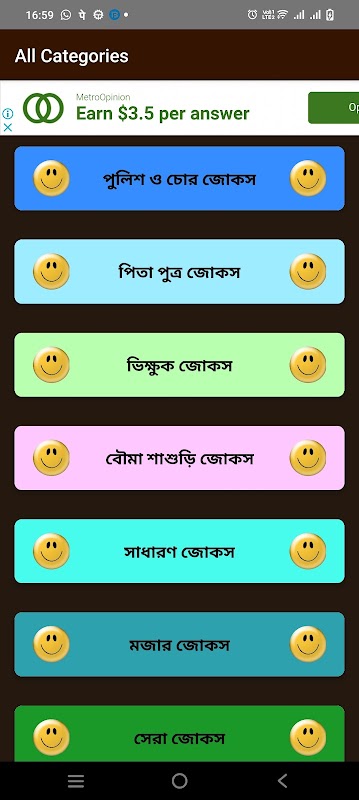 এই অ্যাপে জোকস আপডেট হয় নিয়মিতভাবে যাতে আপনি সারাদিন হাসির সাথে মজার বিতর্কিত হতে পারেন।