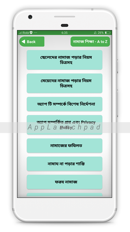 Приложение Bangla с пятью ежедневными молитвами, намерением молитвы и тасбихом