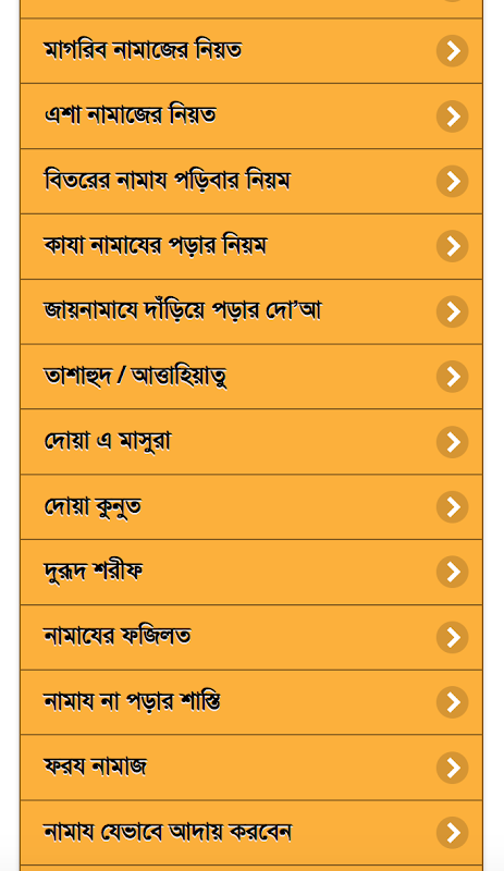 সহজেই নামাজ শিক্ষার সব কিছু শিখে নিন এই অ্যাপ থেকে। নামাযের যেসব জরুরী ব্যাপার জানতে পারবেন; সেগুলো হচ্ছেঃ