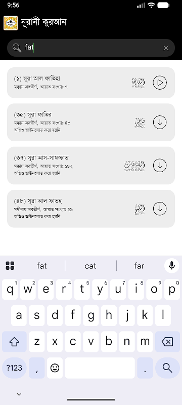 • Список сур и параграфов с поиском