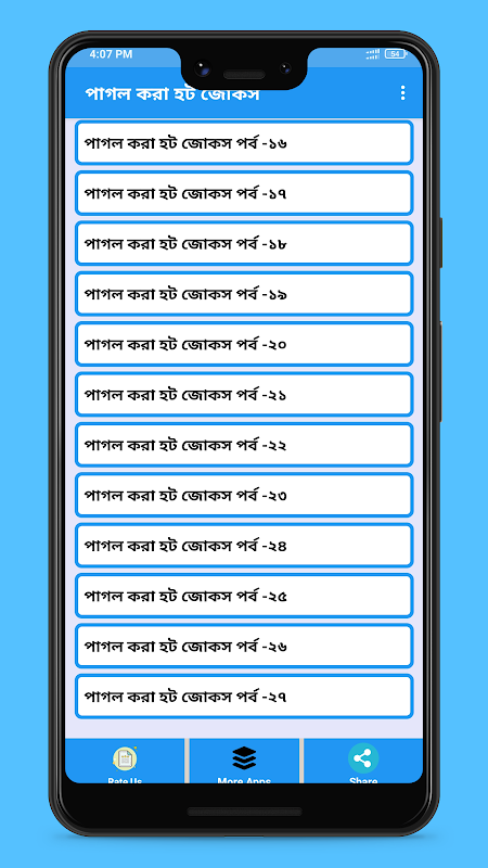 আমাদের কর্ম মুখর জীবনে সবাই অনেক সময় বোরিং বা বিরক্ত হয়ে যাই। তখন আমারা বিভিন্ন ভাবে আমাদের মনকে আনন্দ করে থাকি জোকস পড়া একটি আমাদের মনকে আনন্দঘন করতে। তাই আমারা আপনাদের জন্য নিয়ে এসেছি এই দারুন এপসটি। আমাদের এই পাগল করা হট জোকস এপটি সময় এবং আরো আনন্দ দায়ক সুন্দর ভাবে সাজানো হয়েছে। তাই আপনি আমাদের পাগল করা হট জোক্স এপটি পড়ুন আর মন খুলে হাসুন।