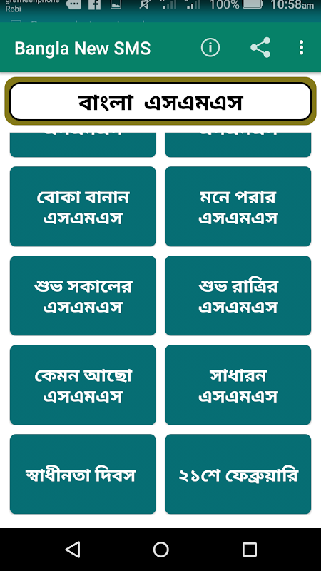 আমাদের আয়োজন বাংলা আধুনিক এসএমএস/Bangla Adunik Sms নামে একটি অ্যাপ যা আপনাদের আত্বীয় স্বজন ও বন্ধু বান্ধবদের সাথে ভাল ভাল Sms পাঠিয়ে তাদের মন জয় করতে পারবেন বলে আমি মনে করি । বাংলা এসএমএস-Bangla SMS অ্যাপটিতে