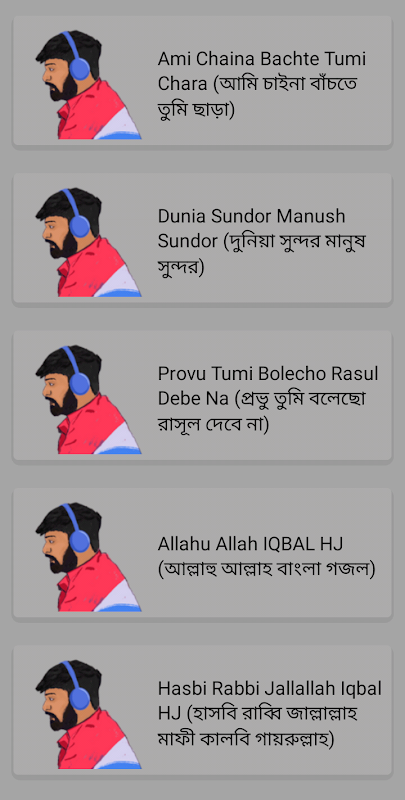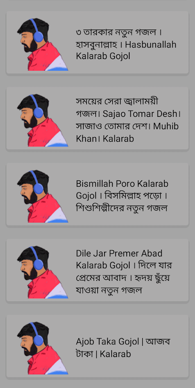 সেরা সব বাংলা ইসলামিক গজল নিয়ে আমরা এই বাংলা অ ডিও গজল mp3 в формате মুসলিম ভাই বোনদের জন্য তৈরী কর েছি । Приложение для приложений и приложений মিক সঙ্গীত / গান পছন্দ করেন তারা নিরসন্দেহে এই মিক সঙ্গীত িও গজল অ্যাপটি ডাউনলোড করতে পারেন, এই অ্যাপটি থ েকে অডিও গজল ডাউনলোড করে শুনতে পারবেন। Bangla gojol mp3 — это аудиофайл Bangla Gojol. В этом приложении Gojol вы найдете более 500 лучших бангла-годжолов в формате аудио mp3. С помощью этого приложения вы можете легко скачать исламскую музыку Bangla Mp3 Gojol и слушать эти gojol...