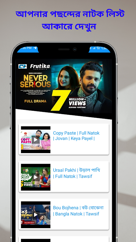 Тщательно отобранный контент: наше приложение отбирает лучшее из лучшего, гарантируя вам доступ к высококачественному натоку, демонстрирующему истинную суть бенгальской драмы. Наслаждайтесь разнообразными жанрами и сюжетными линиями, от романтики и комедии до триллеров и социальных тем.