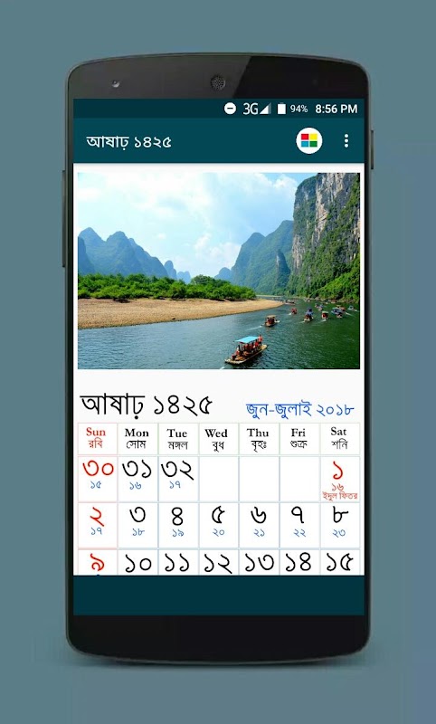 Bangla Календарь 2018 с Говтыми праздниками. সরকারী ছুটিসহ বাংলা ক্যালেন্ডার 14২5