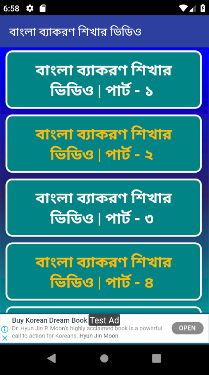 আর আমরা এই অ্যাপটির মধ্যে ইউটিউব থেকে বাছাইকরে বাংলা ব্যাকরণ শিক্ষার ভিডিও একত্রিত করে অ্যাপটি তৈরী করেছি যাতে করে আপনি সহযেই অ্যাপটি চালূ করে বাংলা ব্যাকরণ শিক্ষার বিষয়গুলি পেয়ে যান।