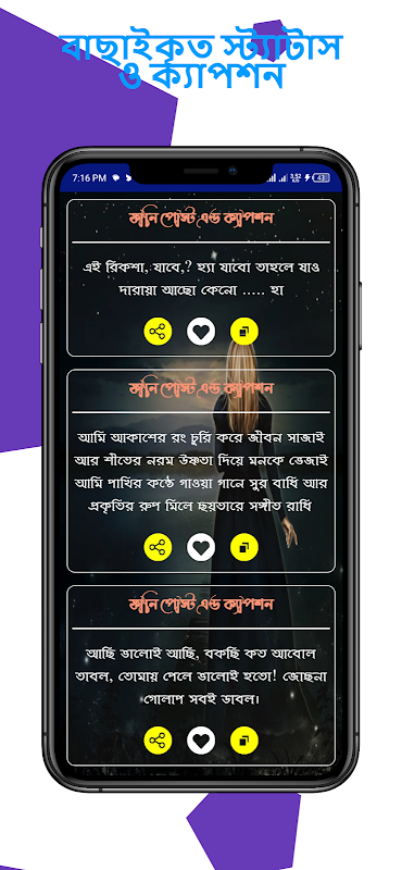 বাছাইকৃত বাংলা স্ট্যাটাস ও ক্যাপশন এপটি সকল ধ রনের স্টাটাস দেওয়া হয়েছে