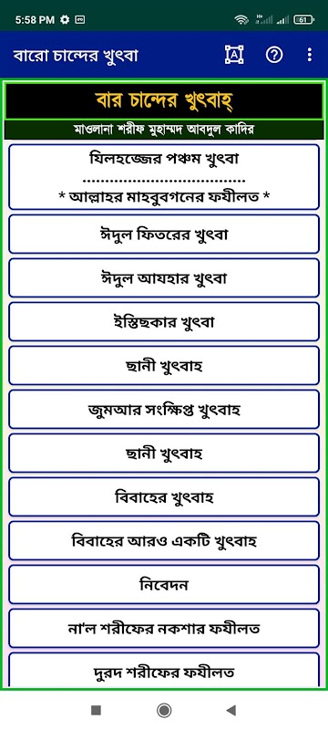 আসসলামু আলাইকুম! প্রিম ইমাম সাহেব গন! গুগল প্লে স্টোরে অনেক খুৎবার কিতাব পাওয়া যায়, কিন্তু বাংলাদেশের সর্বাধিক পরিচিত ছারছীনা প্রকাশনী হইতে প্রকাশিত "বার চান্দের খুৎবাহ্" কিতাবটি আমরা অনেকেই খোজ করে থাকি, কিন্তু পাই না।