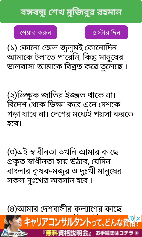 1. বঙ্গবন্ধু শেখ মুজিবুর রহমান এর উক্তি