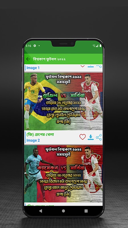 এই অ্যাপটিতে ২০২২ সময়সূচী সম্পর্কে বিস্তারিত জানবেন।।।। এই আপে বিশ্বকাপ ২০২২ এর খেলাগুলোর বাংলাদেশ সময় অনুযায়ী সূচি হয়েছে হয়েছে। তাই বিশ্বকাপ ২০২২ এর খুশি পরিবার ও বন্ধুদের সাথে ভাগাভাগি করতে এখনই করুন আর ছবি সহ প্রতিটি পিকচার শেয়ার করুন ও সবাইকে জানিয়ে জানিয়ে