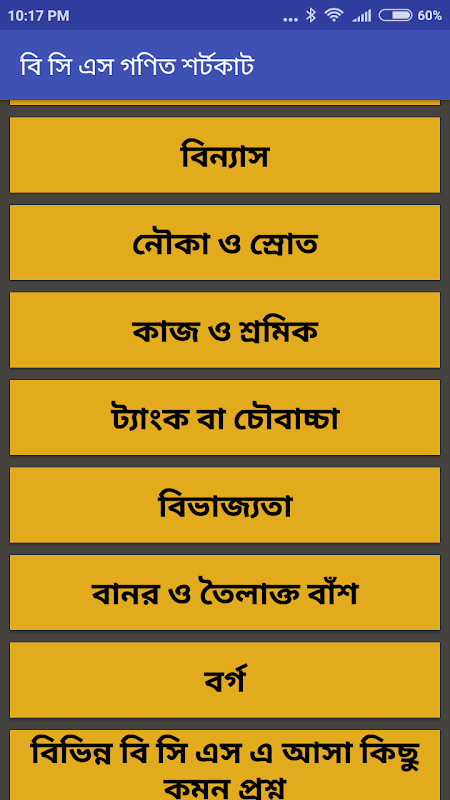 Math tricks as well as math shortcut app is brought to you by shikder studio. Gonit sutro or goniter shortcut app is the best app for math lover. If you know math tricks then it will be very easy for you to solve bcs question bank and solution . In my point of view bcs question bank and solution is possible to solve through this math shortcut tricks in bengali application. There are some app on store based on bcs question bank and also bcs math . you can also solve the problem by this math tricks .