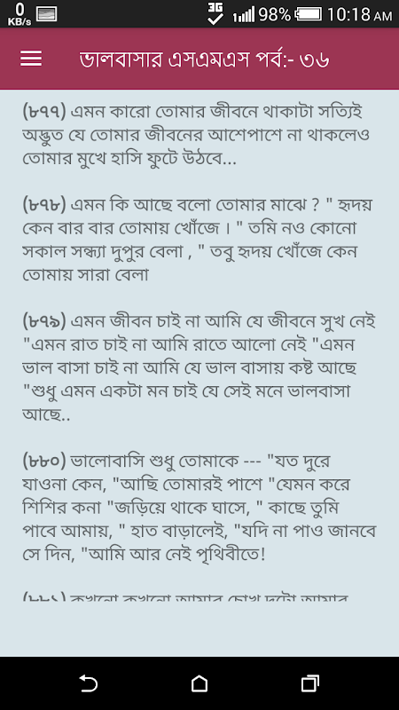 Apps point release a bangla love sms 2019 application for all romantic people. In this application we added lots of love sms bangla.This bangla love sms is helpful for all lovers to sending bangla love sms message.Strong your relationship by sending a romantic love sms to your lovers.You can share all love message in bengali language to social media.Make your life easy by use this app.Its a totally free offline Valobasar SMS application and a best collection of love message.