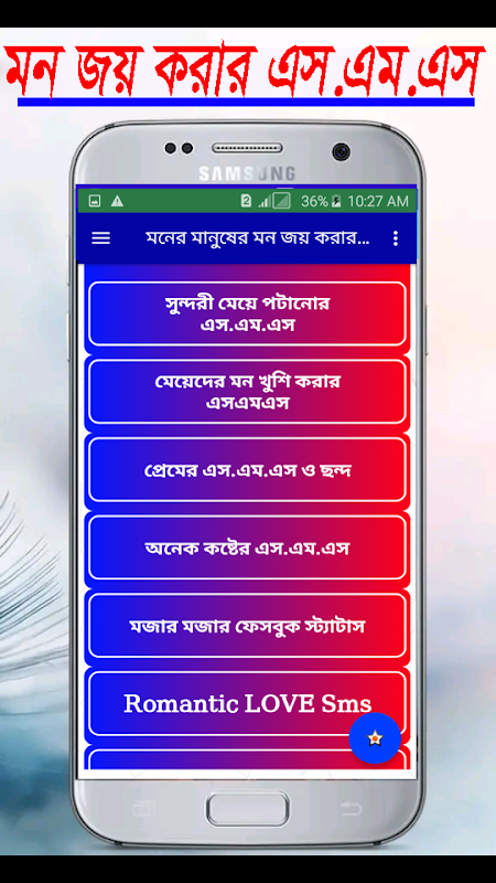 আমাদের অ্যাপের মধ্যে আপনি "ভালোবাসার মানুষের মন জয় করার SMS"সকল এসএমএস খুব সহজেই পেয়ে যাবেন। প্রতিটি এস এম এস "COPY"করে খুব সহজেই আপনি আপনার মনের মানুষকে পাঠাতে পারবেন।শুধু আপনাদের সুবিদার্থে আমার অক্লান্ত পরিশ্রমের ফলশ্রুতিতে এই অ্যাপটি বানানো।