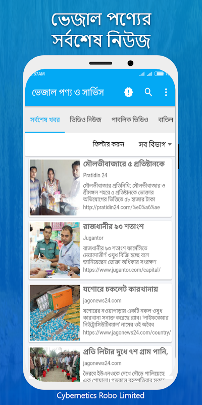 Кроме того, из-за хороших продуктов на рынке, а также множества фальсифицированных товаров и услуг, для нас очень важно знать о последнем списке фальсифицированных продуктов и информации о новостях. Это трудно узнать из различных информационных агентств или государственных учреждений, но при покупке продукта трудно найти его. С помощью этого приложения вы можете легко найти новости, связанные с фальсифицированным продуктом, видео, которые вы можете фильтровать в соответствии с вашими предпочтениями. Если вы хотите узнать новости конкретного продукта, вы можете искать.