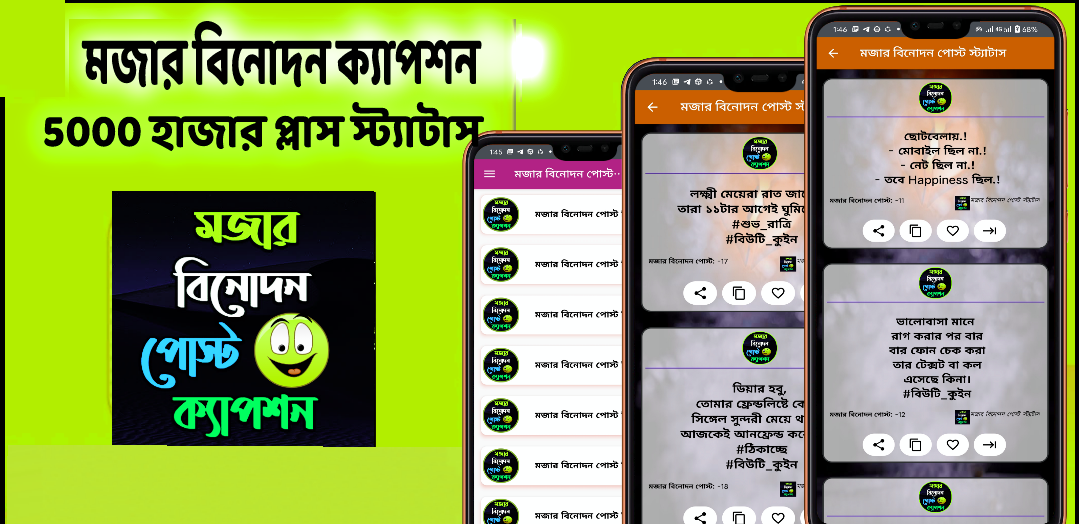 মজার মজার পোষ্ট আর ক্যাপশন অ্যাপসটি সম্পুন নত ুন ভাবে সাজানো যা আপনাদের খুবি দরকারি ।