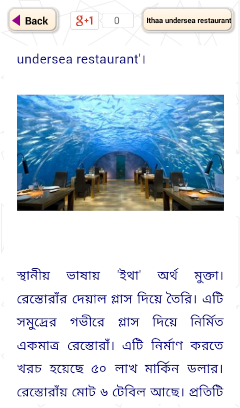 পানির নিচের রেস্তোরাঁ - Ithaa undersea restaurant