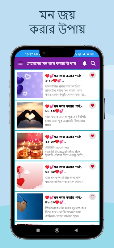 Приложение মেয়েদের মন জয় করার উপায় содержит советы о mon joy korar upay