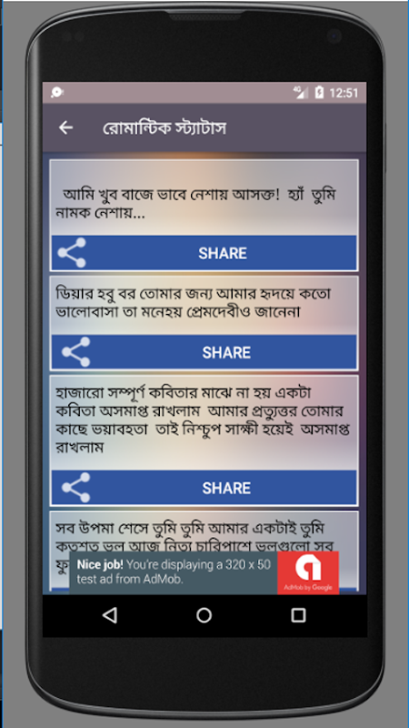 আশা করি এই বাংলা ফেসবুক স্ট্যাটাস (статус для fb) অ্যাপটি আপনাদের ভাল লাগবে। অ্যাপটি ভাল লেগে থাকলে আপনার বন্ধুদের সাথে শেয়ার করুন আর আপনার আমাদেরকে রিভিও করে জানিয়ে দেন। কোন পরামর্শ থাকলে ই-মেইল করতে পারেন। если вам нравится статус для facebook bangla, тогда поставьте нам 5 звезд