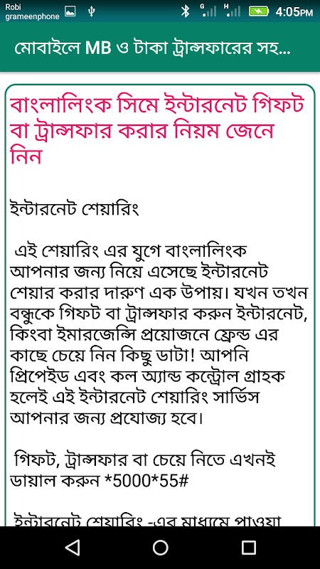 Информация মোবাইলে MB ও টাকা ট্রান্সফারের সহজ উপায় APK