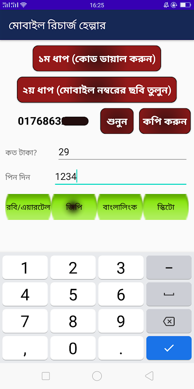 কোড ডায়াল করে মোবাইল নম্বরের ছবি তুলে রিচার্জ / মোবাইল ব্যাংকিং করার সহায়ক অ্যাপস