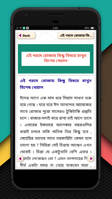 রমজানে সেহরি ও ইফতারে স্বাস্থ্যসম্মত খাবারের মেনু ও রোজায় সতর্কতা এবং সুস্থ থাকার কিছু প্রয়োজনীয় টিপস দিয়ে অ্যাপটিকে সাজানো হয়েছে। রমজান মাস ইসলাম ধর্মাবলম্বীদের জন্য গুরুত্বপূর্ণ মাস। এই মাসে বছরের অন্যান্য সময়ের তুলনায় খাদ্যাভ্যাসে বিরাট পরিবর্তন দেখা যায়। যদি এই সময়ে পুষ্টিকর ও স্বাস্থ্যসম্মত আহার করা না হয়, তবে এক মাস রোজা রাখা কষ্টকর হয়ে পড়ে।