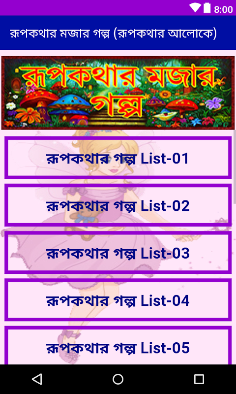 রাজা, রানী, রাজন্যা, রাজপুত্র ও জাদুঘর নিয়ে রূপকথার গল্প। আশা করি আমাদের এই রূপকথার গল্প মোবাইল অ্যাপটি আপনাদের অনেক ভাল লাগবে। নতুন পুরাতন সব ধরনের গল্প দিয়ে সাজানো হয়েছে এই অ্যাপ। এতে পাবেন যাদুগরের মজার কাহিনী। আর রয়েছে যাদুগরি রাজকন্যার গল্প। এই অ্যাপটিতে অনেক শিক্ষামূলক গল্প রয়েছে। এতে করে আপনার বাচ্চারা অনেক ভালো কিছু শিকতে পারবে ।