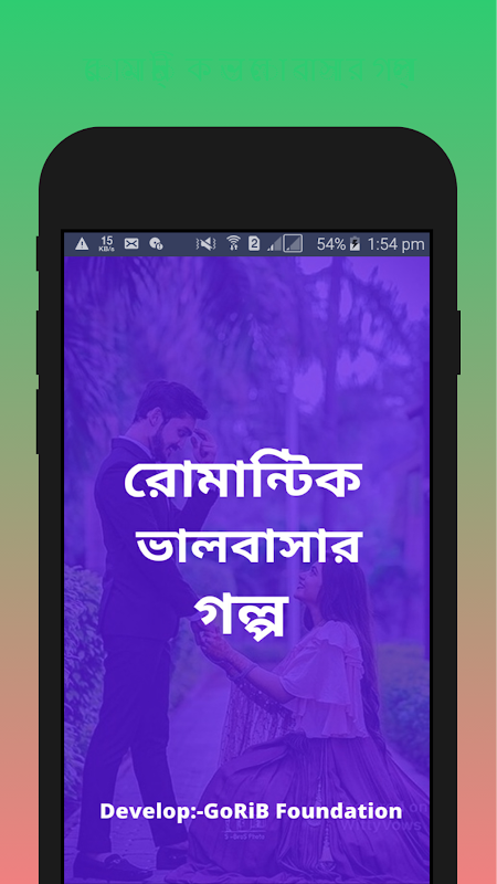 Romantic Valobasar Golpo অ্যাপ্লিকেশনটির মধ্যে আপনারা সবাই প্রতিদিন রোমান্টিক ভালোবাসার গল্প পড়তে পারবেন।