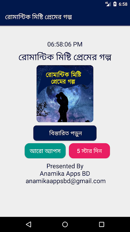মানুষের জীবনে প্রেম ভালবাসা এক অন্যরকম অধ্যায় বা সূচনা । কারো জীবনে প্রেম আসে নীরবে আবার কারো জীবনে প্রেম আসে গোপনে । কেউ ভালবেসে সুখি হয় আবার কেউ ভালবেসে হারিয়ে যায়, । তাই বলে কিন্তু ভালবাসা কখনো শেষ হয় না । আসলে আমরা সবাই এক অদ্ভুদ মায়ার বাধনে আটকে আছি । তো যাই হোক আজকে আমাদের এই অ্যাপটি মূলত ভালবাসার গল্প নিয়ে করা হয়েছে । একগুচ্ছ নতুন ভালবাসার গল্প দিয়ে সাজানো এই অ্যাপটি । ভাল লাগবে আশা করছি।