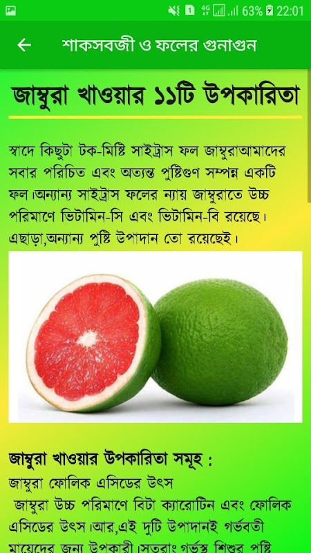 Информация শাক সবজি ও ফলের গুনাগুন APK