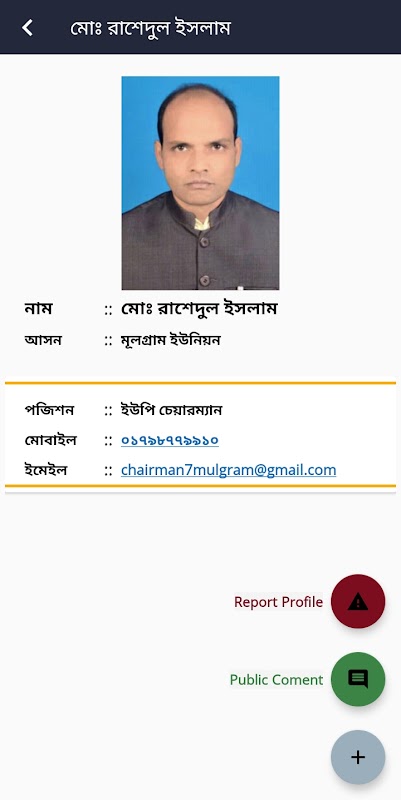 এই অ্যাপসের মাধ্যমে আপনি আপনার এলাকার এমপি, উ পজেলা চেয়ারম্যান, ইউনিয়ন চেয়ারম্যান, মেম্ব ারদের সাথে সহজেই যোগাযোগ করতে পারবেন।