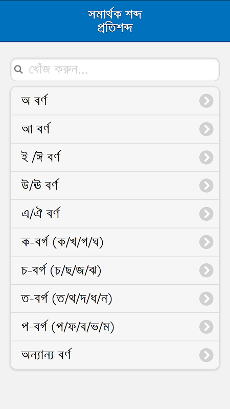 যারা বাংলা ব্যাকরণ এর অতি গুরুত্বপূর্ণ বিষয় সমার্থক শব্দ – প্রতিশব্দ খুঁজছেন তাদের জন্য এই সমার্থক শব্দের সংগ্রহ অ্যাপ। এপটিতে রয়েছে ৫০০ এর অধিক সমার্থক শব্দ বা প্রতিশব্দ। রয়েছে সার্চ অপশন যেখান থেকে সহজেই খুজে নেয়া যাবে কাঙ্ক্ষিত প্রতিশব্দ বা সমার্থক শব্দ। সহজ সুন্দর ডিজাইনের এই এপটি ডাউনলোড করা ও ব্যবহার করা যাবে সম্পূর্ণ ফ্রি। বাংলা সমার্থক শব্দ সংগ্রহ অ্যাপটি ষষ্ঠ শ্রেণী থেকে নবম-দশম ও একাদশ-দ্বাদশ শ্রেণির জন্য উপযোগীকরে বানানো যা কিনা আপনার বাংলা ব্যাকরণ এর তথ্য ভাণ্ডারকে করবে আরও সমৃদ্ধ।