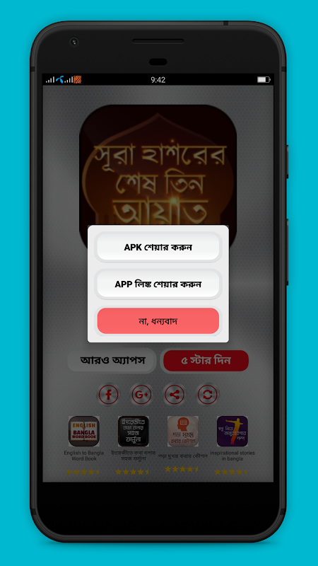 আমাদের «সূরা হাশরের শেষ তিন আয়াত» আ্যাপটিতে সূরা হাশরের শেষ তিন আয়াত অডিও তেলাওয়াত সহ এর ফজিলত এবং মাজেজা বিস্তারিত বর্ননা করা আছে. সাথে কখন কিভাবে আমল করলে উপকার পাওয়া যাবে. তাই ভাল আমল কারার জন্য আমাদের এ্যাপটি মোবাইলে নামিয়ে নিন এবং বন্ধু-পরিবারের সাথে শেয়ার করুন. আ্যাপ সম্পর্কে আপনাদের মূল্যবান মতামত জানাতে কমেন্ট করুন. এ্যাপ তৈরী তে উৎসাহ দিতে পাঁচ তারকায় চিন্হিত করুন.