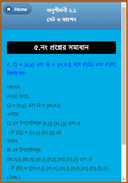 নবম-দশম শ্রেণীর সাধারণ গণিতের দ্বিতীয় অধ্যায়ের (সেট ও ফাংশন) সমাধান।