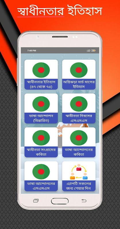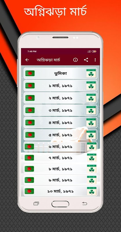 This app include all incident what happened since 1857 to 1947. We focused on after division of Pakistan and India. Especially, after the independence from the British of 1947, we get recognition as a part of Pakistan based on religious majority. The period is called the Pakistan period from 1947 to 1971. The people of the underprivileged people began to be vocal in the darkness of exploitation of the nuns. As a continuation of this movement, a movement that took place in the history of the world named as language movement was started. After this, the people of Bengal learned to be one by one, according to the needs of time including Partition of Bengal, six-point movement. The election of 1970 under the leadership of Bangabandhu Sheikh Mujibur Rahman, the undisputed leader of Bengal was held so that Sheikh Mujibur Rahman won with huge votes, but he was not allowed to take power, and only after the emergence of Bangladesh, the seeds of wakefulness were planted in the minds of Bangladeshis. Bangabandhu's speech in this year's annihilation received full enthusiasm, it was the beginning of the history of independent Bangladesh which was also known as the history of 1971 liberation war. The speech of today also encourages the people of Bengal, the speech of Bangabandhu on 7th March, as the epic of politics still unrestrained today. Then the itihas of Bangladesh is known by all as usually.