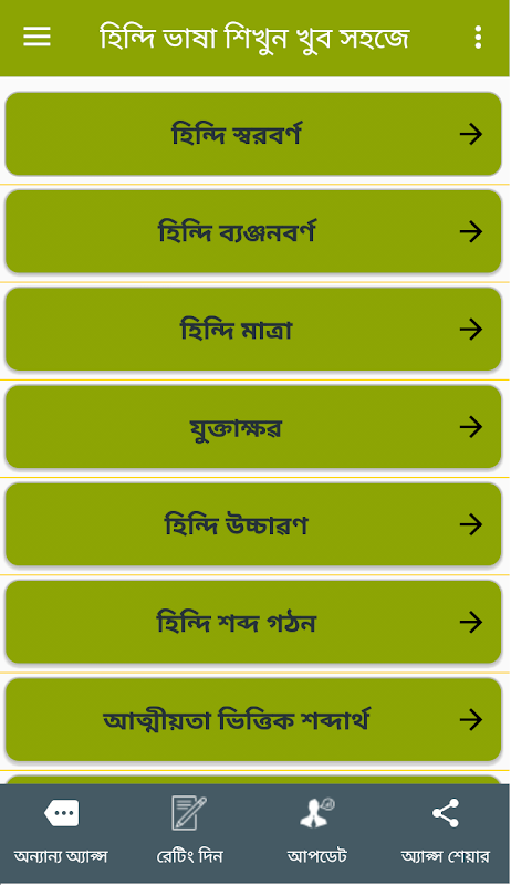 দিয়ে। যারা বাংলা থেকে হিন্দি শিখতে চান তাদের জন্যই এই অ্যাপটি করা হয়েছে যেন খুব কম