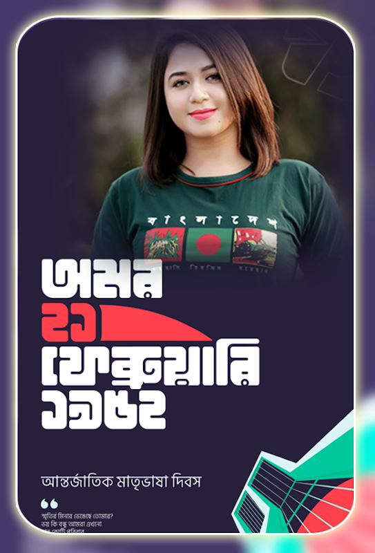 অ্যাপে ২১ ফেব্রুয়ারী সুন্দর সুন্দর ফ্রেম দিয়ে সাজানো হয়েছে এই অ্যাপটি।।