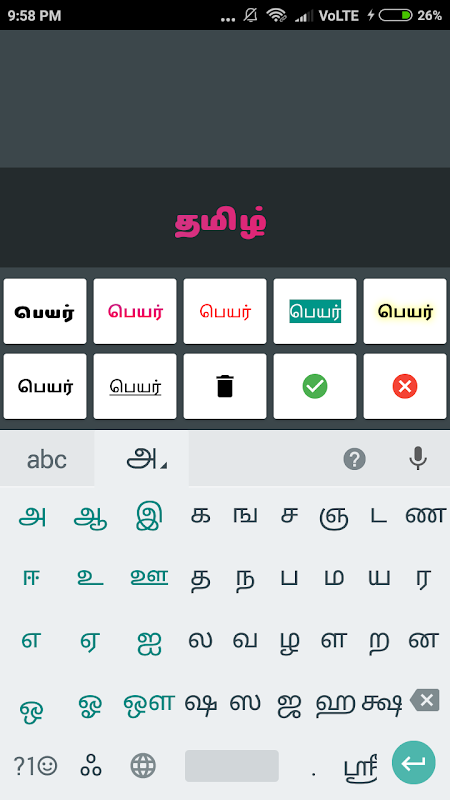 Вы можете печатать на тамильском языке, используя встроенную тамильскую клавиатуру.