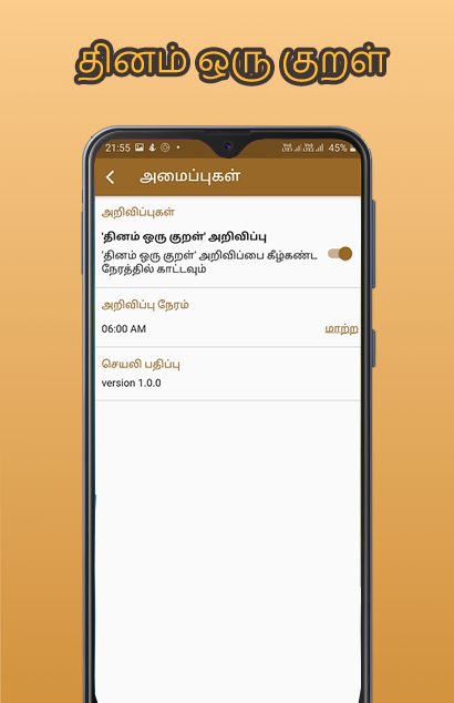 ✓ «தினம் ஒரு குறள்» уведомляет Thirukkural ежедневно в удобное для вас время.