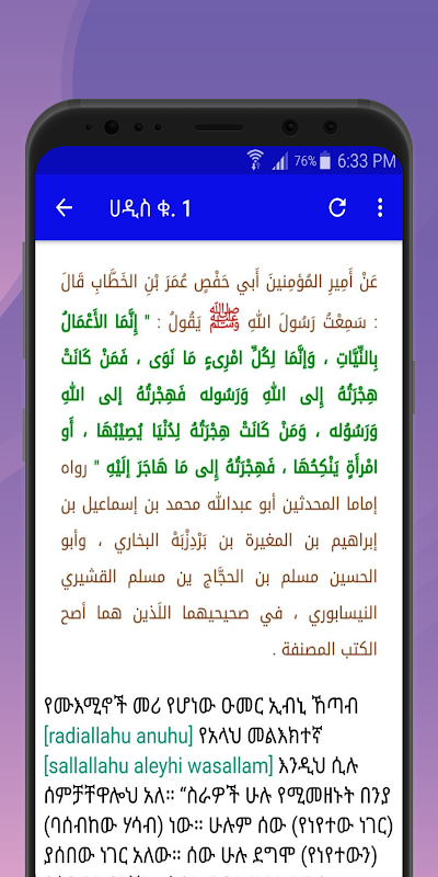 Короче говоря, «40 хадисов» имама Навави представляют собой собрание точных утверждений Посланника Аллаха, да благословит его Аллах и приветствует. Эти хадисы учат основным принципам ислама. Он разработан таким образом, чтобы эфиопским мусульманам было легко учиться. Каждый арабский хадис представлен в переводе на амхарский язык.