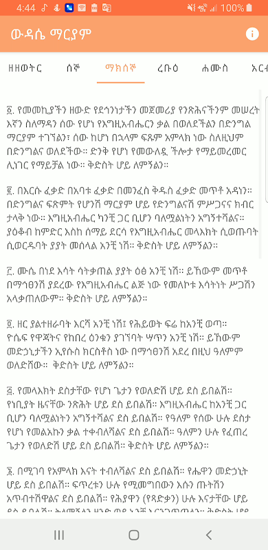 Слава Марии, Возлюбленной и Высокой, это одна из самых любимых молитв, созерцаемых святым Ефремом Сирийским, которая во многих притчах прославляет Деву Марию. Благодаря своей литературной красоте, она также является источником глубокой тайны и молитв. Согласно учебной программе эфиопской православной церкви Тевахедо, студенты будут изучать этот достойный похвалы урок Марии после чтения и пения в области устных занятий. Этот урок будет повторяться в церкви каждый день.