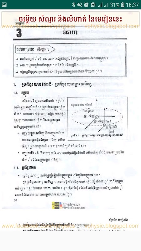 ក្នុង App នេះ (កំណែរូបវិទ្យាទី១១ Physics Grade 11)រួមមាន៖