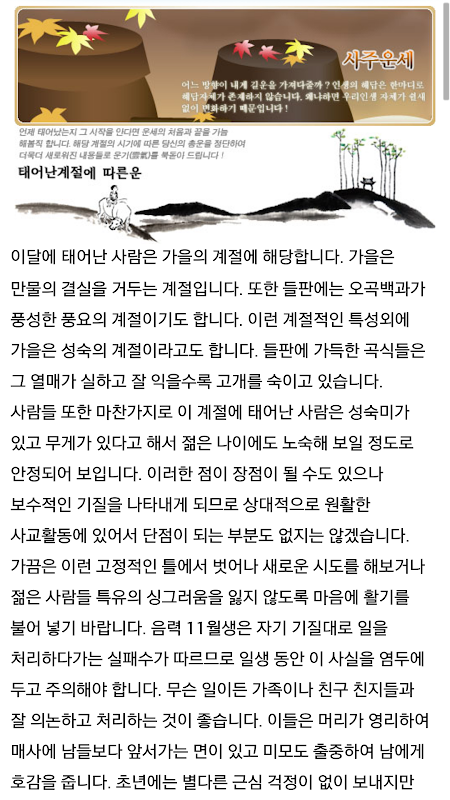 내가 어떤 사주를 타고 태어났는지 한번쯤은 궁금하셨죠?사주는 물론 토정비결,손금,화투점,부적,오늘의 운세까지지금 확인하세요. 물론 무료!!
