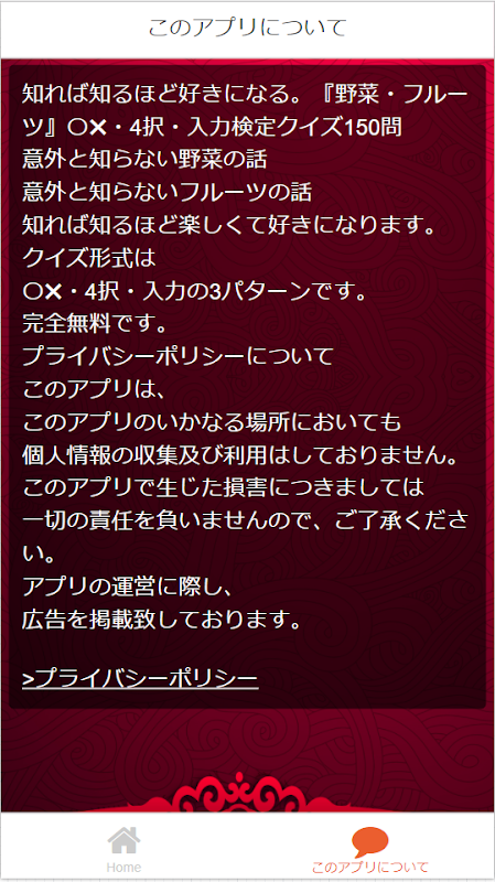 意外と知らない野菜の話意外と知らないフルーツの話知れば知るほど楽しくて好きになります。クイズ形式は〇✖・4択・入力の3パターンです。完全無料です。