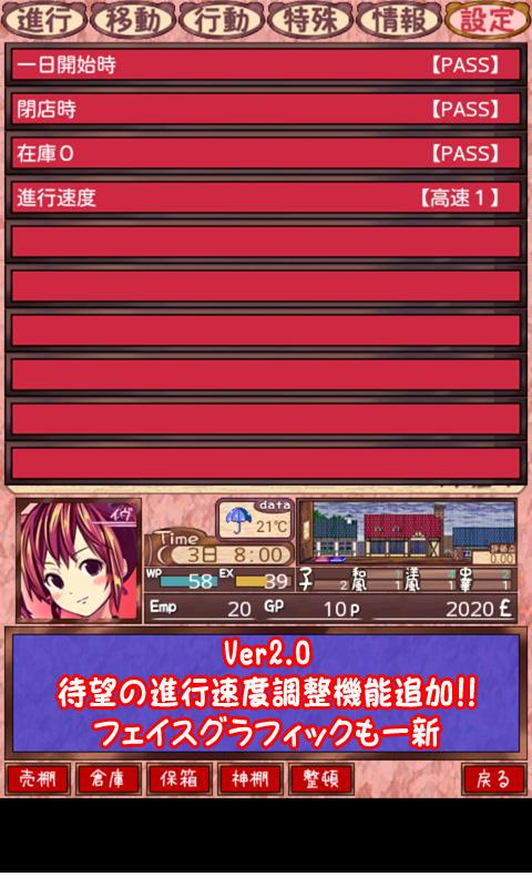 Фэнтези-менеджмент SLG, который следует за течением "Lemuore no Renkinjutsushi", который можно назвать шедевром "Dog and Cat"! Количество товаров превышает 600, количество посетителей меняется в зависимости от погоды и температуры, количество клиентов значительно увеличилось с 8 видов до 50 типов, более 100 друзей, увеличилось количество мест для приключений.